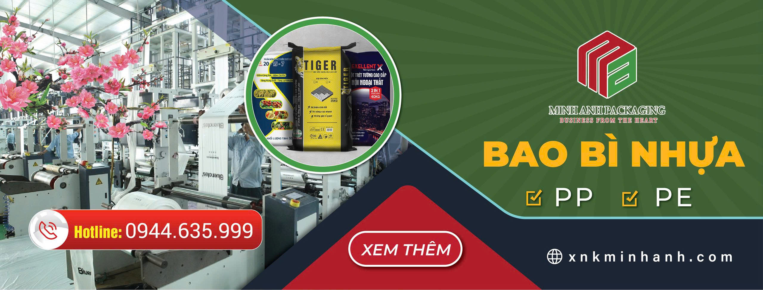 Minh Anh Group là nhà sản xuất và cung ứng hàng đầu bao bì đóng gói như: Bao JUMBO, Bao SLING, Bao PP dệt, Bao phức hợp, túi PE, màng HDPE, bạt nhựa HDPE, màng cuộn, túi siêu thị HDPE , túi siêu thị … Sản phẩm của Minh Anh Group với nhiều quy cách và chủng loại khác nhau được cung cấp toàn thị trường trong nước và xuất khẩu sang một số nước bạn.
